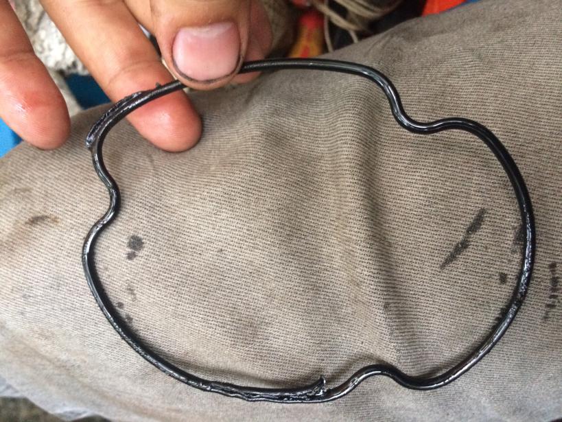 So, Rostlöser gestern drauf und heute mit Kontermutter draufschrauben den abgebrochenen Stehbolzen rausgedreht bekommen. Unten ein Foto der Dichtung, offensichtlich ist die Dichtung letztes Mal beim Einsetzen des Ölfilterdeckels nicht in der Halterung geblieben, sondern wurde vom Deckel zerdrückt. Hätt ich letztes Mal ein bisschen Fett drauf gegeben, das hätte mir einiges an Zeit und Geld gespart. Aber so lernt man