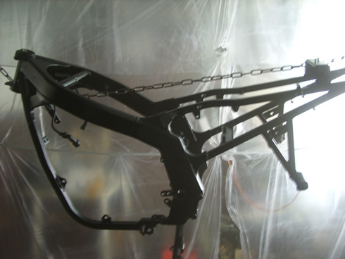 Zündspulen war ein Management problem. Ich kam beim eingebauten Motor nicht ran. Blieben also erstmal dran. Dann hat ein kollege ihn gesandstrahlt und gemäß unseres Ablaufes alles so hinterlassen wie er es bekommen hat, also Zündspulen wieder angeschraubt. Rahmen wurde aufgehängt und ohne groß nachzudenken..... ABER die Kontakte haben noch schnell "Steckfüße" oder sowas bekommen, damit die kontakte frei bleiben.