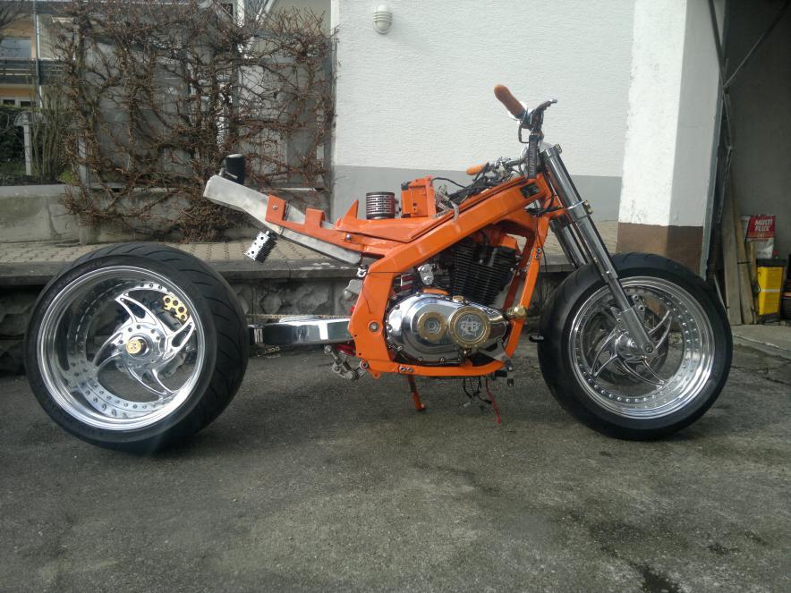 Mal ne Frage am Rande, was ist das eigentlich für ne Schwinge bzw. Antrieb am Rudi? Also ich mein ne RC36 isses ja nicht, zwecks Kraftübertragung...oder wurde der Antrieb modifiziert? Immer wieder geil zu sehen, in meinen Augen ist Rudi das geilste Schwein, dass Du im Stall hast. Prancer ist mir nen Ticken zu flippig, aber das ist ja Geschmackssache und der Chopper ist ebenfalls lecker, nur etwas minimalistisch vom Lack ( meine Meinung ) aber ich denke das ist auch so gewollt. Alles in allem, was Du baust hat Hand und Fuß, mach weiter so