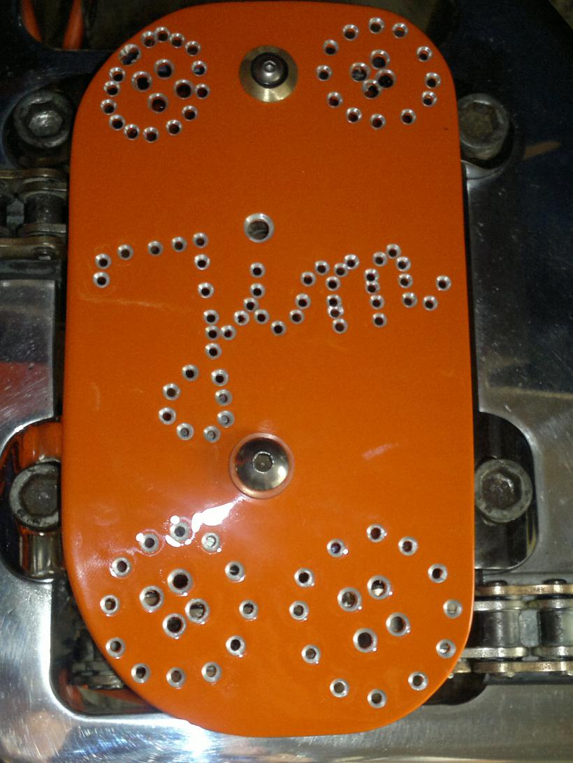 Wie wärs denn, wenn Du das gleiche Farbschema wie auf dem Motordeckel und am Federbein auch auf dem Kettenschutz wieder aufnimmst?