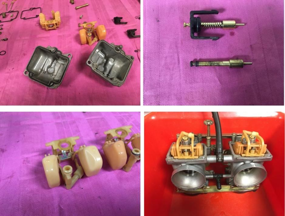 Heute an der Katana wieder Tank runter, Vergaser entleert, den Ablassschrauben neue Kupferscheiben spendiert und Seitenständer wieder dran (muss für den TÜV ab )