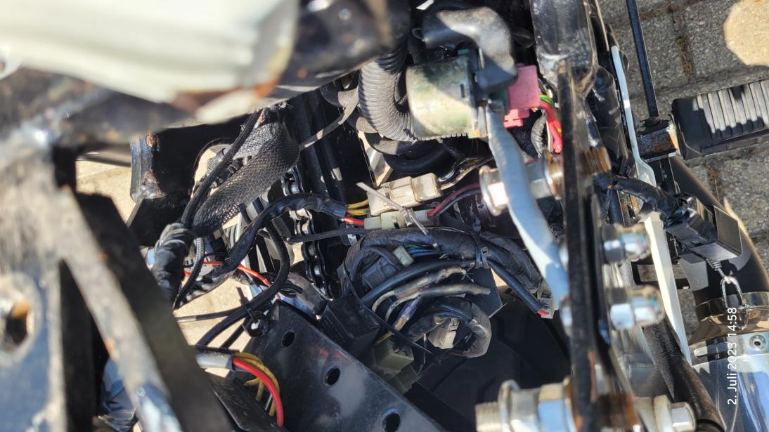 Bremslichtschalter vorn gewechselt. Zur Fehlersuche auch Tank abgenommen. Dabei Spritschläuche gewechselt. Schwache Batterie gegen Delo-Gel von Lou ausgetauscht.