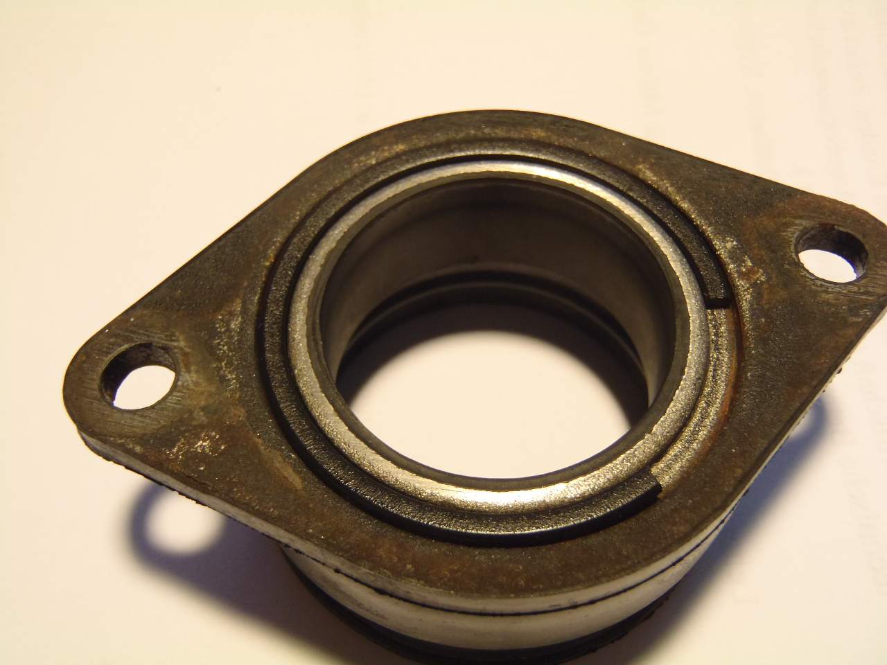 Zwischen Motorblock und Luftfilter kommen erst noch die Vergaser. Die Ansaugstutzen haben keine O-Ringe, die sind selbst aus Gummi und dichten über eine Nut an den Verbindungstellen und die Schellen zum Festschrauben ab.