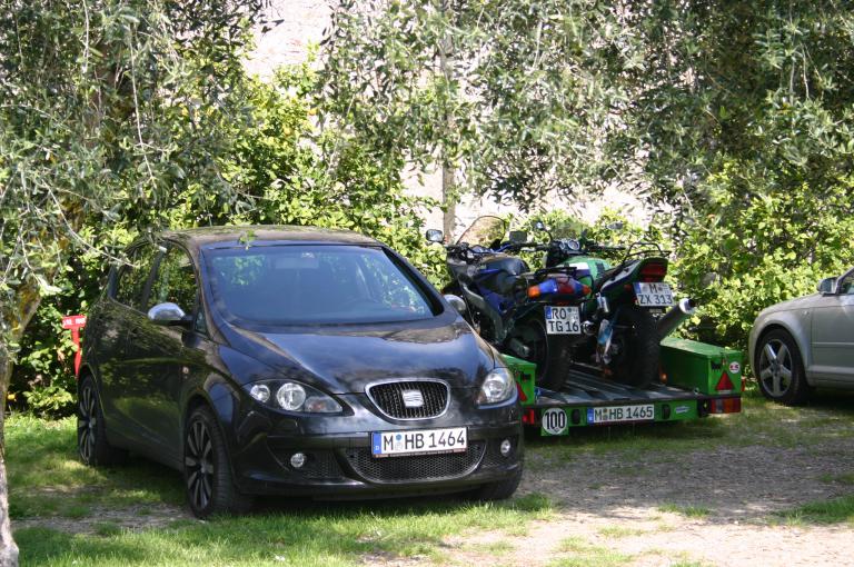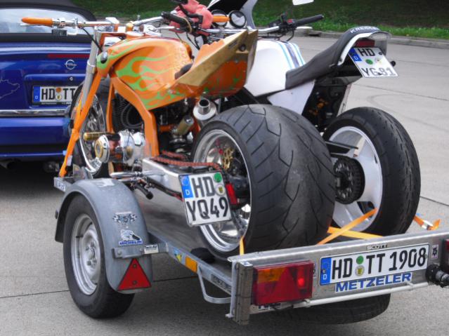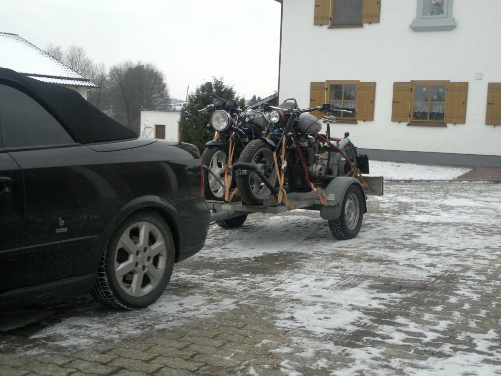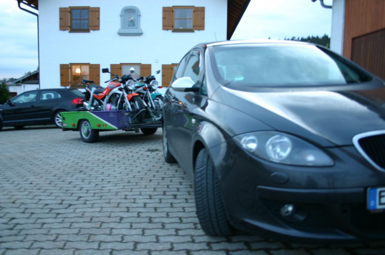 Neue Challenge: Auto und Hänger und 2 Mopeds drauf.