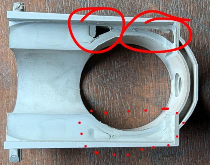 da ich leider nicht weiß, wie das Teil (siehe Foto) heißt, ist eine Suche recht schwierig. Beim Zerlegen/Säubern meines Versagens und dessen Einzelteile habe ich dieses Teil mit Druckluft abgepustet. Ich weiß leider nicht, ob die Öffnungen (rot umrandet) vor der Reinigung oder dem Abpusten schon da waren. Aber es kommt mir nicht richtig vor. Ich würde mal vorsichtig behaupten, dass es so bleiben könnte. Was meint ihr? Gruß MarMic |