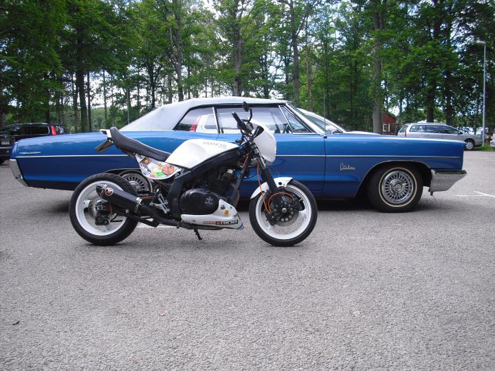 Nächste Aufgabe: Dein Mopped neben einem Oldtimer |