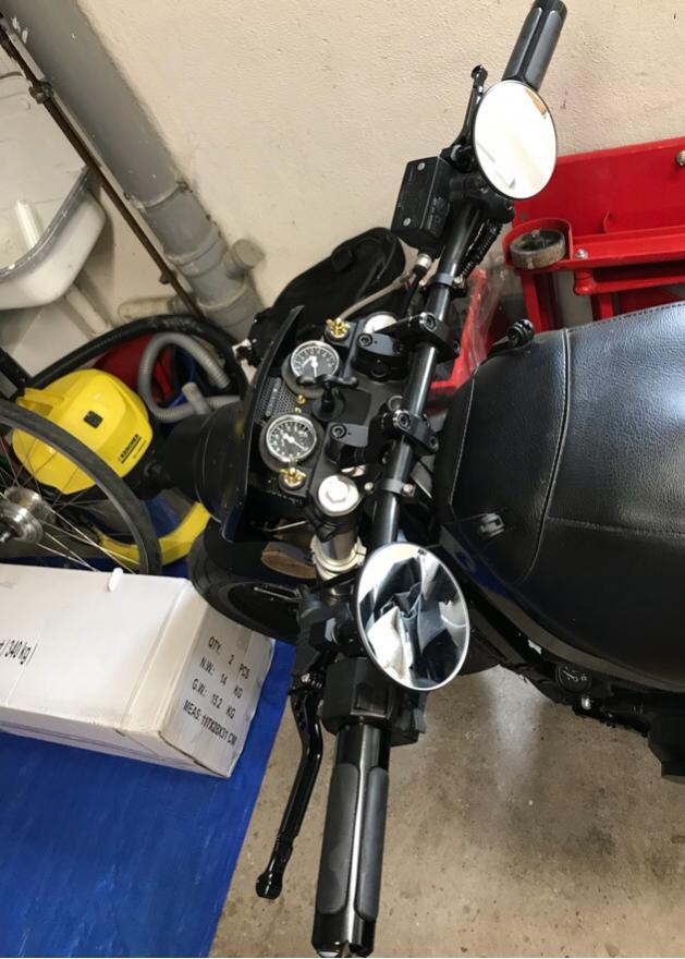 Gewinner der Wahl "GS des Monats Juni 2018" ist mit 60,00% Enricus - GS500E BJ 92, etwa 120000km - Lenkerumbau, LSL Dragbar in SW-Motech Variobar Böcken - Stahlflexleitung vo + hi - Speichenfelge mit 120/70er Michelin PiPo vorne - Kleiner Fender - Bremssatel vorne von der GS500F - Progressive Gabelfedern und Faltenbelege - Bates Style Klarglasscheinwerfereinsatz in einer Traktorlampenfassung zusammengeschraubt in einer Honda XL 500 Frontmaske - Cockpit Neuaufbau inkl „versteckter“ TomTom Halterung - Wagner Bugspoiler - Bagster Tankandeckung - Individuelle kleine Tanktasche - Heckumbau von Robert - GSF650 Schwingenumbau mit 160er PiPo - Ixil Shorty rechts - Ixil Shorty links (kommt nächste Woche dran) - Munitionskisten abschließbar links und rechts