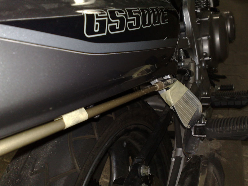 Vorne am Rahmen fixieren und hinten auch unter der Abdeckung. Halt mal ran und schau, ob da nichts im Weg ist. Pass aber auf, dass sich das nicht lockert und in die Gabel reinrutscht und somit die Lenkung blockiert. Eine Fixierung, die die Möglichkeit unterbindet, musst du noch finden. PS. Was hast denn fürn Eisen? 3er?