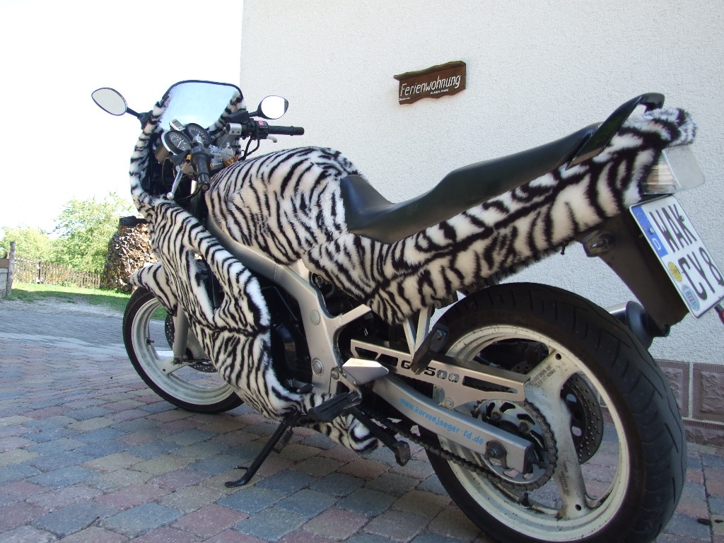 GeFELLt mir! Würd ja auchgerne ne Gs mit Fell beziehen!Aber eine mit Vollverkleidung! Müsste mir dann aber ne dritte GS zulegen,um das auch noch zu machen! Ich glaub das wär dann doch zu viel....hmm...obwohl...