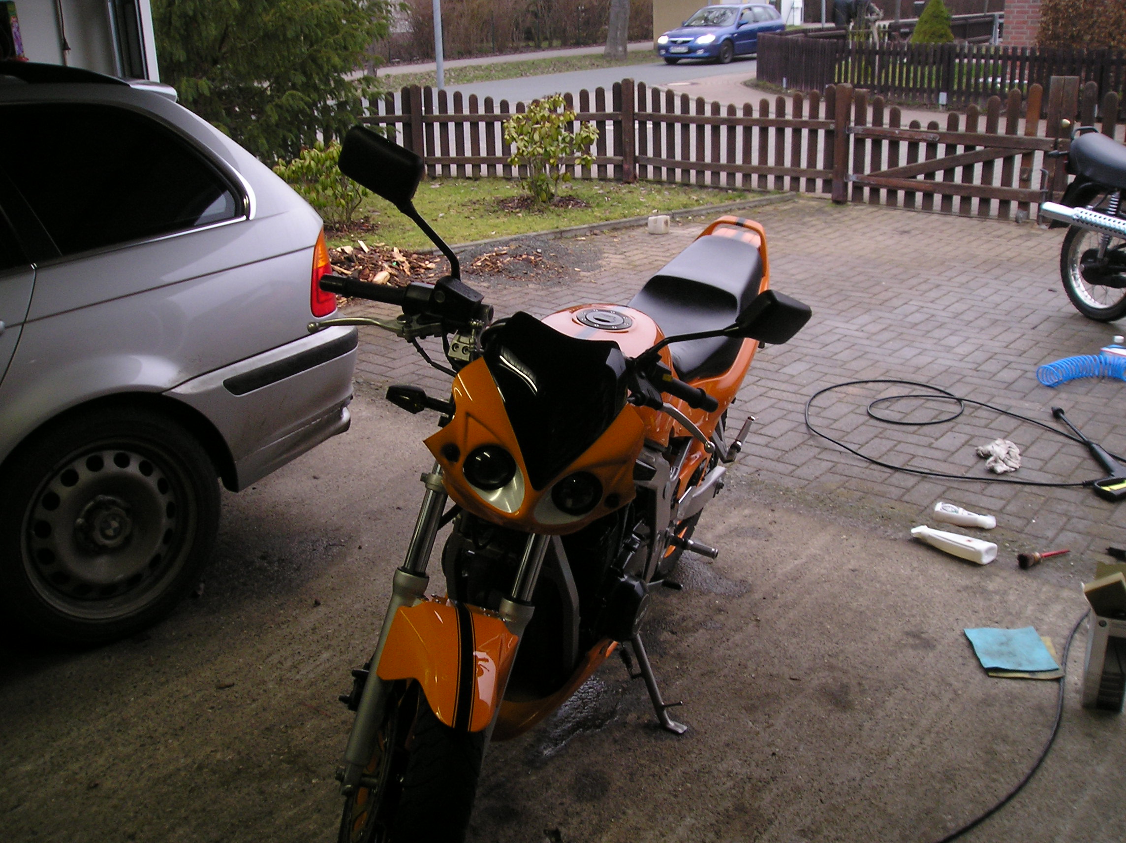 Meine GS hab ich vor gut 5 Monaten gekauft in diesem doch recht gutem Zustand. [attachment=6:2gk6zi2i]P1010064.JPG[/attachment:2gk6zi2i] tja aba irgendwie reichte es mir nicht^^ und es kamm ein IXIL dazu und ein K&N Luftfilter hinzu. Tja und dann war auch schon wieder winter Da ging der Umbau so richtig los so sah sie zwischenzeitlich aus [attachment=5:2gk6zi2i]P1010085.JPG[/attachment:2gk6zi2i] In dieser Zeit habe mir so einige Dinge gekauft. Bugspoiler Hinterradabdeckung eine Lichtmaske die Lackierung wurde vom Profi gemacht un heißt Kommunal Orange mit schwarzen Raching Streifen finde das es super aussieht. Ich habe versucht diesen "Styl" über das Motorrad zu verbreiten sprich felg und alle anderen Teile. so sieht sie nun aus [attachment=3:2gk6zi2i]P1010107.JPG[/attachment:2gk6zi2i] [attachment=4:2gk6zi2i]P1010109.JPG[/attachment:2gk6zi2i] [attachment=2:2gk6zi2i]P1010124.JPG[/attachment:2gk6zi2i] [attachment=1:2gk6zi2i]P1010127.JPG[/attachment:2gk6zi2i] [attachment=0:2gk6zi2i]P1010130.JPG[/attachment:2gk6zi2i] So sieht sie bis jetzt aus Moment kommen noch Miniblinker und LSL Fussraste dran. Dann ist sie fertig und warte auf besseres Wetter als schnee und Kälte