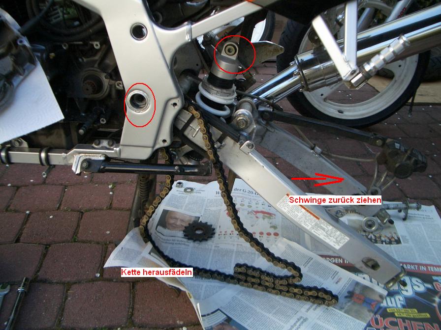 Dass das Hinterrad runter muss um das Kettenrad zu wechseln war mir klar, die Ritzelabdeckung für das Ritzel auch noch... aber muss wirklich auch die Schwinge weg um die Kette auzutauschen?