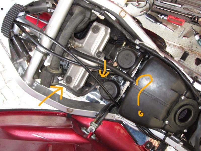 Die GS läuft soweit sehr gut, soweit habe ich nur ein Problem mit der Aussage "auf beiden Vergasern sollte eine Kappe sein", denn auf meinem linken Vergaser war nie eine Kappe, aber ich denke dieser Schlauch gehört da hin... |