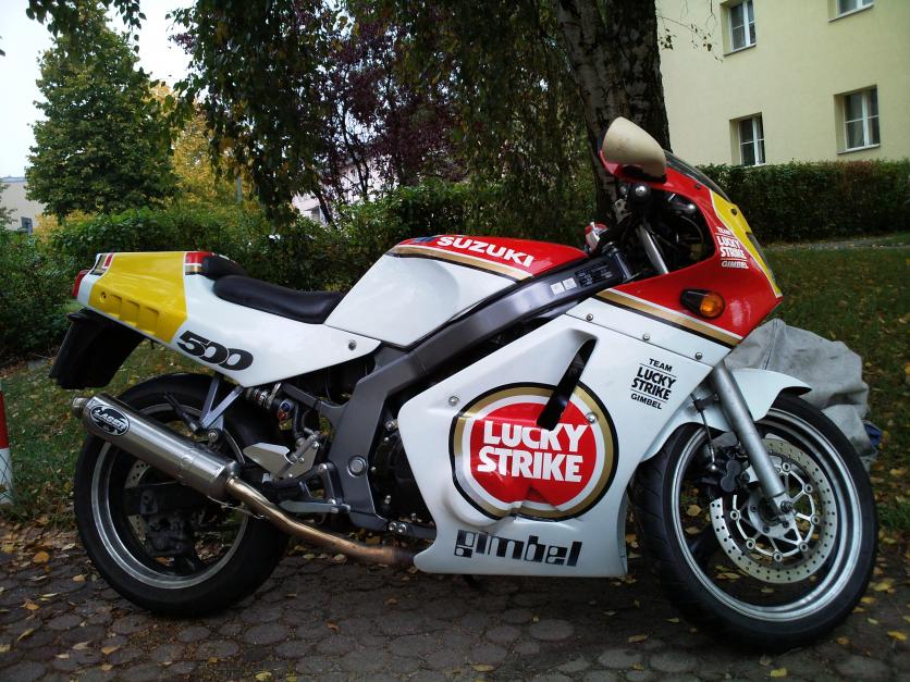 GM 51 B BJ 1996 KM 27000 RGV 250 Replika "Lucky Strike" Wilbers Federbein Typ 631 mit Ausgleichbehälter Wilbers Gabelfedern Stahlflex Bremsleitung Laser Deeptone Auspuffanlage RF 600 Schwinge und hintere Felge Bridgestone BT 010 bereift