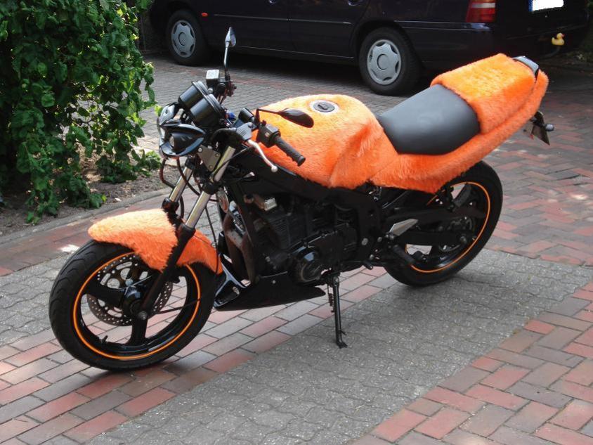 Baujahr 1991 (Gm51B) 50 PS (offene Leistung) 54t km Umbauten/Änderungen: Kunstfell orange Rahmen schwarz lackiert Felgen/Schwinge/Gabel etc. schwarz lackiert BSM Vampire Soziussitzabdeckung Acerbis Cyclops Maske Kennzeichenhalter (selfmade) Felgen Zierstreifen SV 650 Federbein kleine Spiegel kleine Blinker vo/hi Bugspoiler (wohl ein Gimbel nachbau) lg oety PS: hier könnt ihr den ganzen Spaß auch noch nachlesen wenn ihr wollt http://forum.gs-500.de/showthread.php?t=17814 |