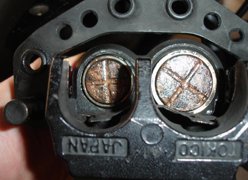 Bei dem alten war Bremsstaub in die Führungen gelangt weil die Faltenbälge nicht mehr so gut waren. Nach der Reinigung und dem einfetten mit Silikonfett war zwars alles wieder leichtgängig nur eben zu viel Spiel. Vielleicht hat der Bremsstaub die Führungen ausgeschliffen. Der innere Bremsklotz liegt nun auch richtig an, nur gut das ich nicht weiter gefahren bin und darauf gehofft habe das er sich zurecht schleift. Hätte er wahrscheinlich irgendwann, aber so ists besser und ich hab auch ein sicheres Gefühl.