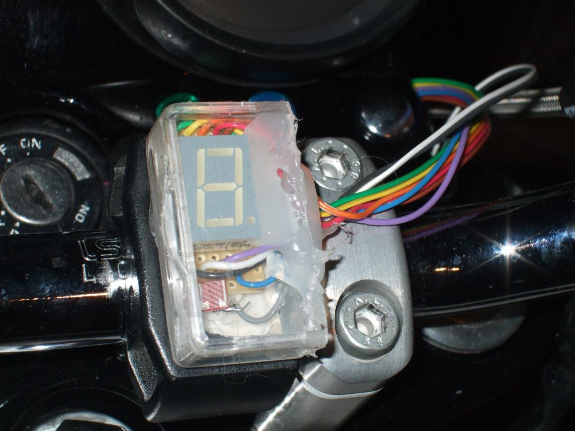 Habe mir einen GSX400 Gangsensor bei ebay gekauft, diesen gegen den originalen Gangsensor ,der das Leerlauflämpchen gegen Masse schaltet, ausgetauscht.