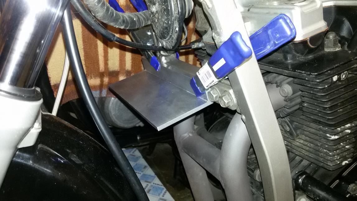 Und bei <20€ für nen XJ600 Kühler kann man sowas mal probieren. btw: warum eigentlich die ultrafette Aluplatte und die langen Schrauben? Nur auf der unteren Seite verschraubt auf viel dünnerem Material sollte doch auch locker reichen...die Kühler wiegen doch nischt?!