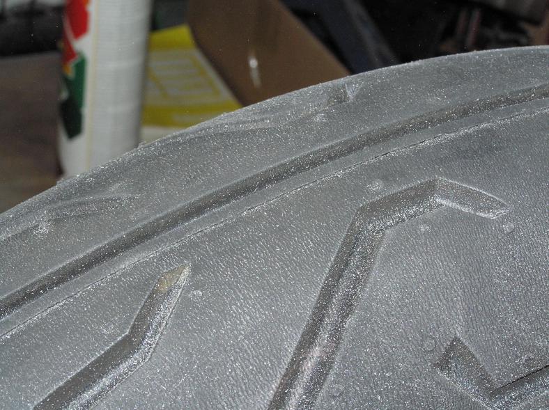 In Mittellage habe ich eine Rille. OK ! In Fahrtrichtung rechts ( links nicht ) habe ich genau neben der Rille einen 1,5 mm hohen Steg, der sich einmal komplett über den Reifen geht. Ist das ein Fertigungsrest ? Detlev |
