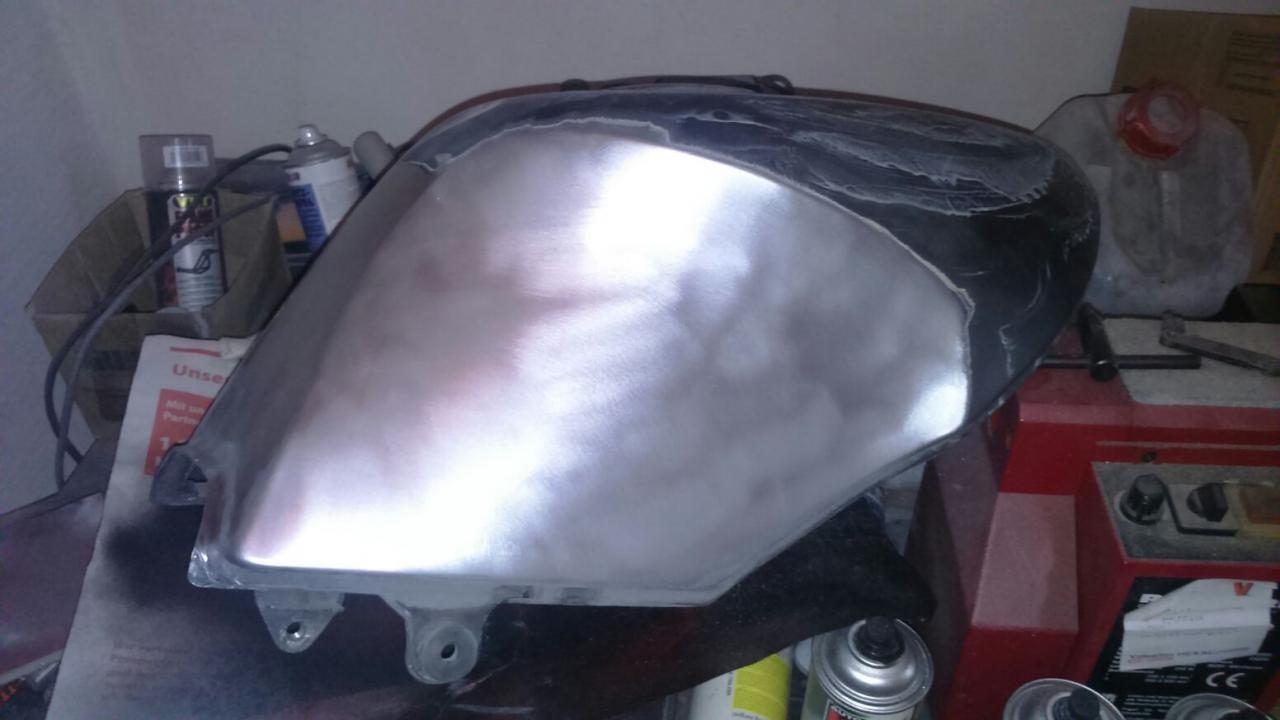 Hast du das Windschild mit Absicht so flach gestellt? Da stimmt ja der Abstand und Rundungskompatibilität zum Scheinwerfer gar nicht mehr
