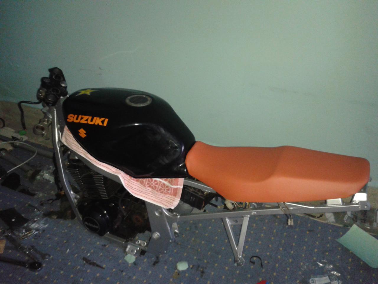 Der F-Tank dazu die angepasste Sitzbank und Halterungen am Rahmen.