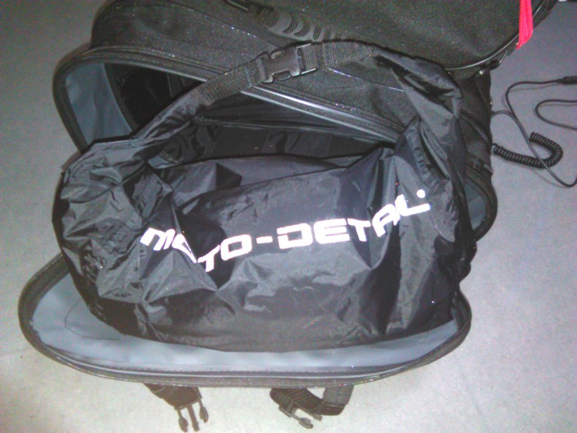 Also Spritzwasserdicht sind die Satteltaschen aber in nem richtigen Regenschauer wird der Inhalt trozdem nass. Dafür sind Innentaschen in dem System dabei. Für die Soziustasche ist eine Regenhaube integriert.