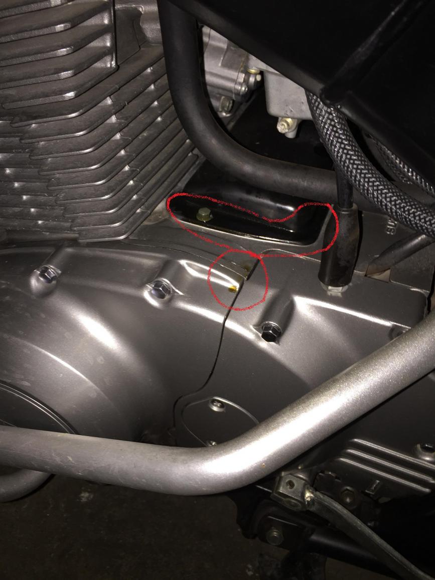 Jedoch verliert/schwitzt die GS500 gemäss Bildern Öl (ich nehme an es ist Öl). Es ist nicht allzu schlimm, in der Garage hat es auch keinen Ölfleck am Boden. Der Ölaustritt trat zum ersten Mal nach mehreren Autobahnfahrten auf (30-50km). Trotzdem habe ich Ölspritzer auf den Stiefeln nach längerer, schneller Fahrt.