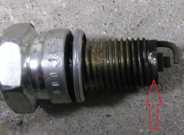 Dürfte die Steuerkette übersprungen sein (viel zu viel Spiel). Dann warscheinlich Schlag auf das noch offene Ventil durch den Kolben und Kollision mit der Kerze. Da das/die Ventil(e)verbogen sein dürften, gehts auch nicht die KW durchzudrehen. Kopf muss runter und hoffen das nicht auch Kolben und KW was abbekommen haben.
