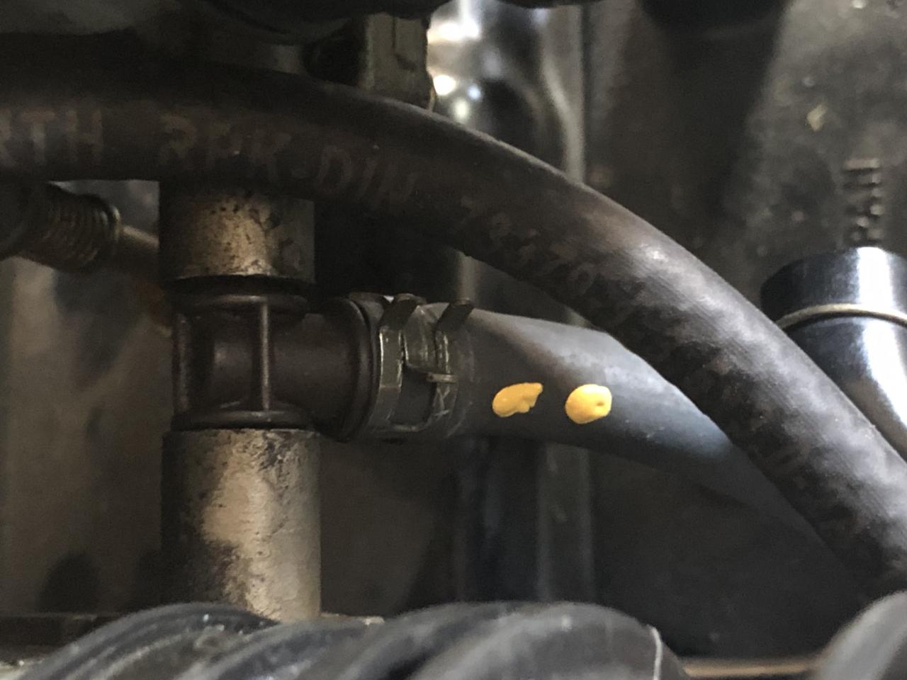 Der Sitz des Schlauch P1 sieht schon merkwürdig aus. Den Schlauch mal mit ner Schelle andrücken? Hat der nicht einen Innendurchmesser von 5mm? Die Wirkung des Bildes liegt wohl eher an der Aufnahme.