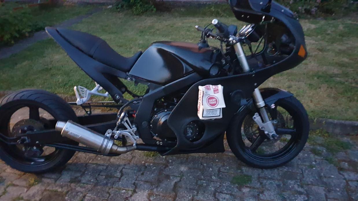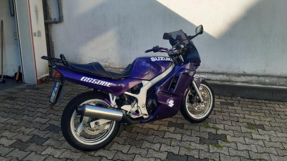 Suzuki GS 500 E Baujahr 1994 irgendwas um 38000km In meinem Besitz seit 2009. Umbauten: Wenn man sie überhaupt so nennen kann. Einen Sitz vom bekannten Ebay Händler, Five Stars Vollverkleidung mit einem neuen H4 Scheinwerfer gegen Blindheit, Superbike Lenker, Garagentoröffner im Cockpit, Stormgrips auf dem Tank kleineres Ritzel, andere Gabelfedern selbst gemachte WBA mit Gehäusen von der GSX und WVBK Navihalter Galionsfigur Pummeleinhorn und der Rest sind kleine optische Details, einigen Spökes hab ich bestimmt auch total vergessen, weil sie schon ewig an der Maschine sind. ![]()
