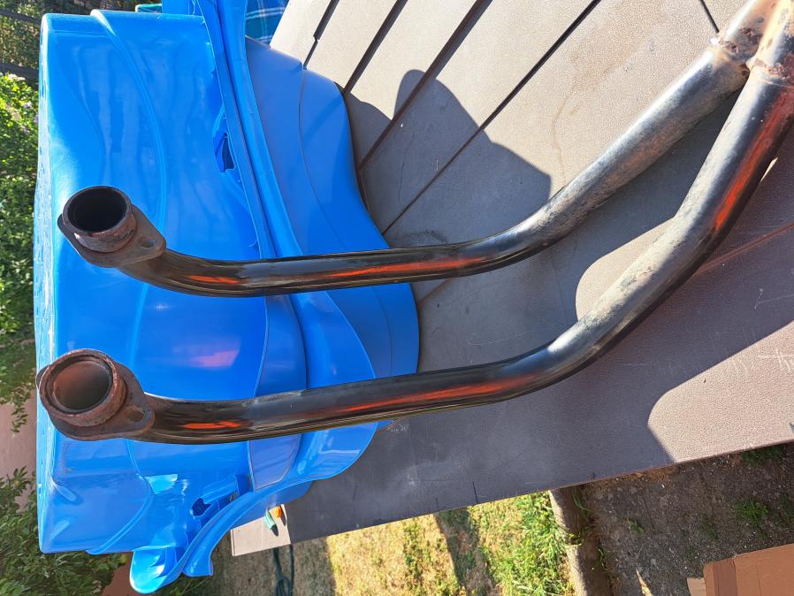 Wer kennt diesen Krümmer? Schwarz emailliert, ohne Zwischenrohr und Schweißpunkte an den Einlässen,damit die Anschraubschellen oben bleiben und nicht durchrutschen!