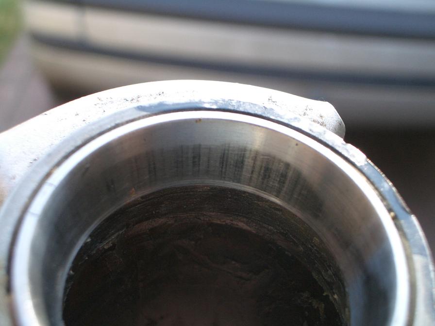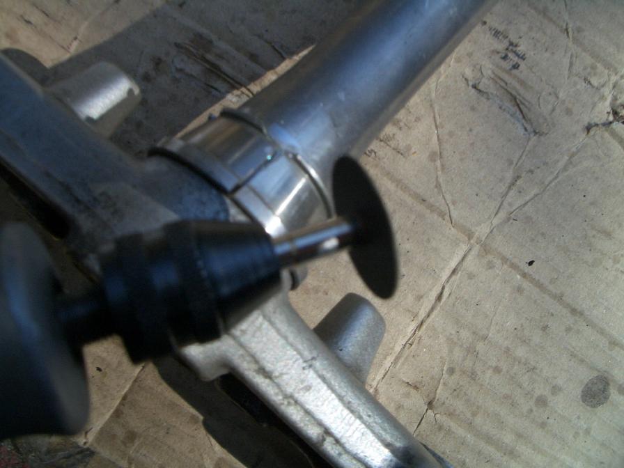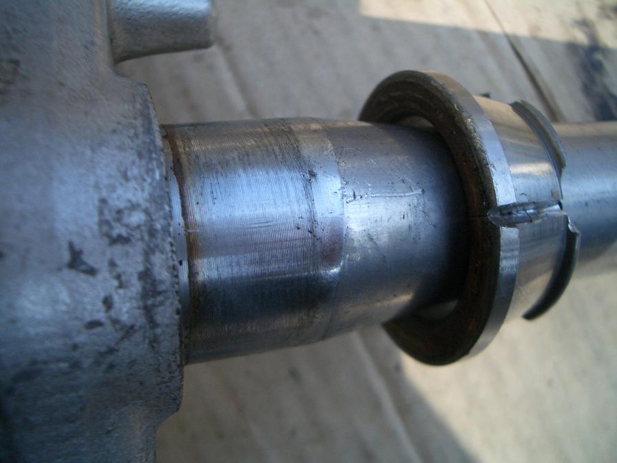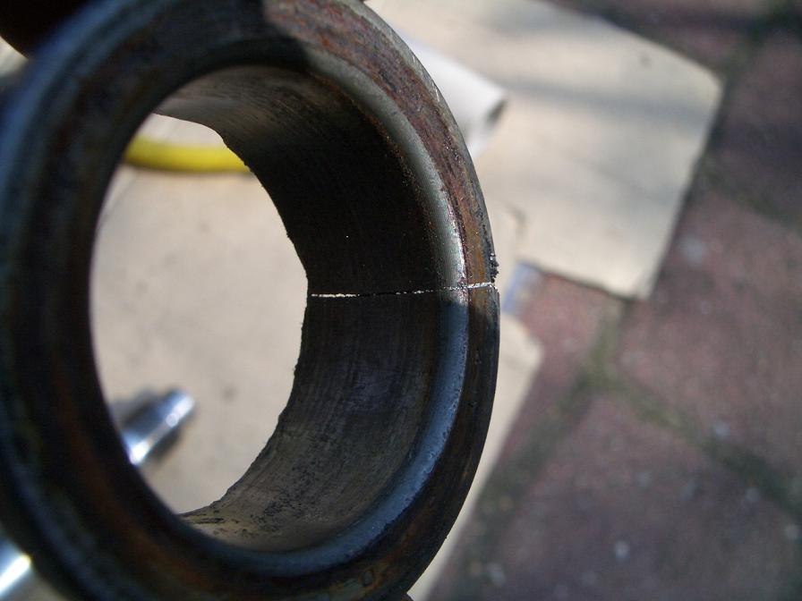 Beim Schlag auf das geschlitzte Lager sollte man unbedingt weiterhin die Schutzbrille und am besten Handschuhe tragen. Da das Teil gehärtet ist, können sich beim Schlag sehr scharfe Splitter lösen und davon fliegen. So einen hab ich mir beim Wechsel durch die Hand gejagt. Dort ist jetzt eine gut sichtbare Narbe :roll: |