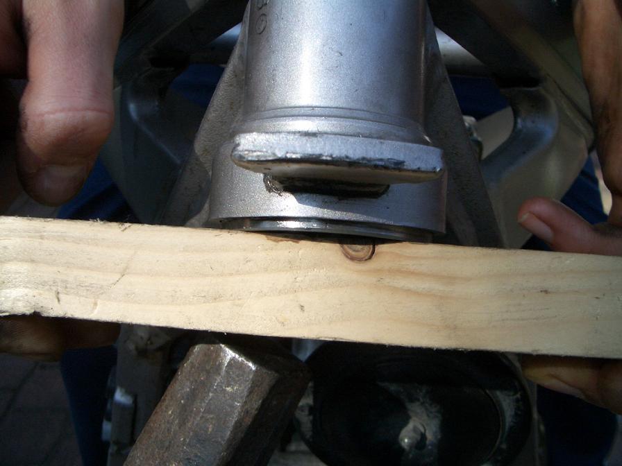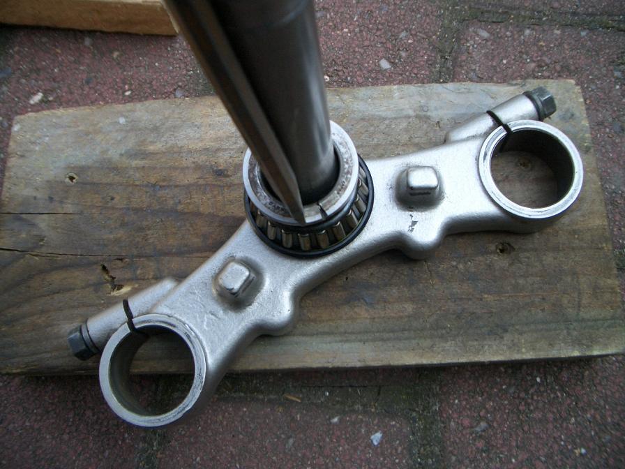 Schraubendurchmesser ..... mit "4" markierte Schraube ........ mit "7" markierte SchraubeWenn ich was vergessen/vertauscht habe, bitte PN an mich! Edit: Ich habe jetzt das LKL meiner 1998er GS wechseln müssen. Augenscheinlich hat sich da am/im Steuerrohr etwas geändert (andere Materialstärke?). Jedenfalls kommt man von oben nicht an die Kante der unteren Lagerschale. Geht also nicht so einfach wie bei den früheren Modellen, die ich bisher in der Mangel hatte. Mit einem kleinen Abzieher und Flachstählen ging es dann. Einen Flachstahl (nicht breiter als 15-20 mm, Stärke min. 5 mm (ein alter Maulschlüssel tuts zur Not auch)) braucht man als Widerlager für den Abzieher, den zweiten (min. 30-35 mm breit, auch 5 mm stark, >20 cm lang) um von oben auf den Widerlagerstahl hämmern zu können (der Abzieher allein ist mir zu oft abgerutscht, daher bin ich dann doch wieder mit mehr Gewalt rangegangen). Ein entsprechend bemaßtes Rohr wäre noch besser gewesen. |