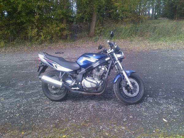 wir können ja unsere kisten tauschen :D da ist dann schon stahlflex vo/hi dran, prog. gabelfedern sind auch schon drin und n bandit federbein hab ich auch statt des gs federbein :D