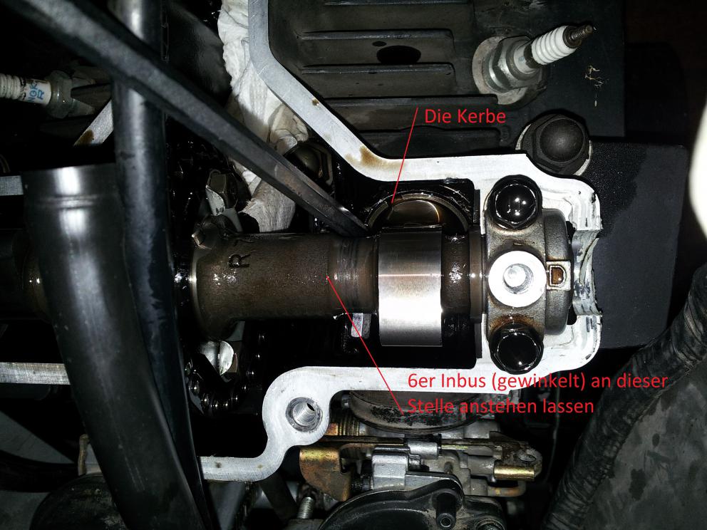 So, ich habs nun geschafft, nur mittel durchtauschen, alle Ventile auf ein Spiel zu bringen das ziemlich in der Mitte des Toleranzbereiches liegt. (Auslassventile sind eher am Maximum) Den Ventildeckel hab ich nun auch schon wieder drauf, Dichtmasse hab ich nur auf die Halbkreise getan. Die Dichtung war noch top in Schuss. Hoffentlich wird der Spass dicht.. HIER MEIN TIPP AN ALLE ANFÄNGER DIE KEIN SPEZIALWERKZEUG HABEN: Ein 6er Inbuss 90° gewinkelt passt peeerfekt um die "Tasse" unten zu halten. man muss ihn nur richtig einklemmen dann geht das super easy. (Also die Kurbelwelle drehen, dann Inbusschlüssel rein, dann wieder weiter drehen bis die Markierungen passen usw usw.. ) Und vorallem: VORHER die Tasse so hindrehen das man die Kerbe da hat wo man den Shim anheben will. mfg |