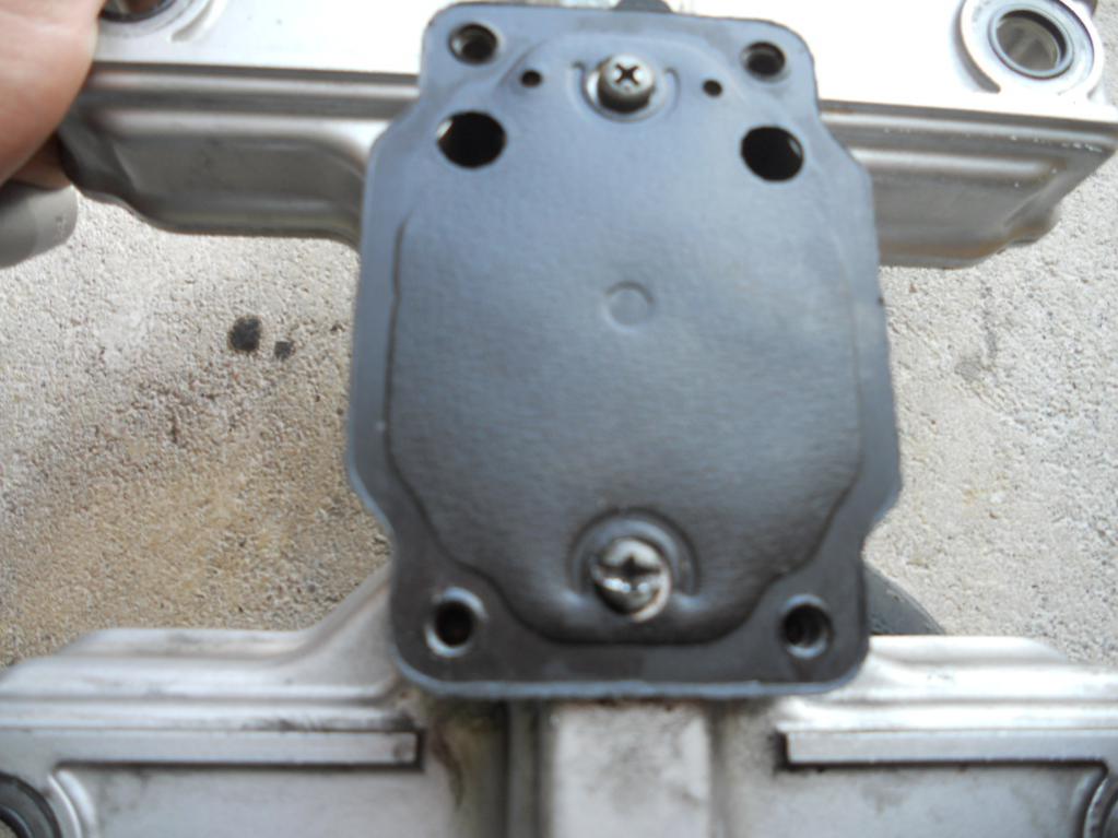 Nun sieht man ja auf die zwei (ursprünglichen) Kreuzschlitzschrauben, die die obere Steuerkettenschiene im Ventildeckel halten.