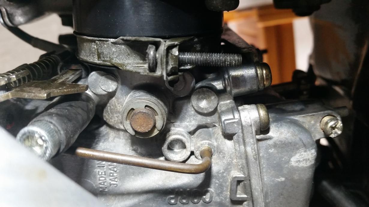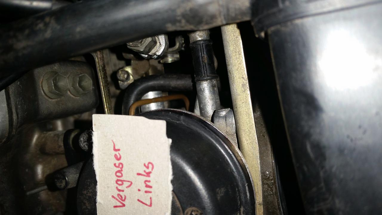 Auf den ersten beiden Bildern ist der rechte Vergaser mit dem Blindstopfen (keine Ahnung wieso der dort ist). Auf dem dritten Bild der linke Vergaser (mit Zettel