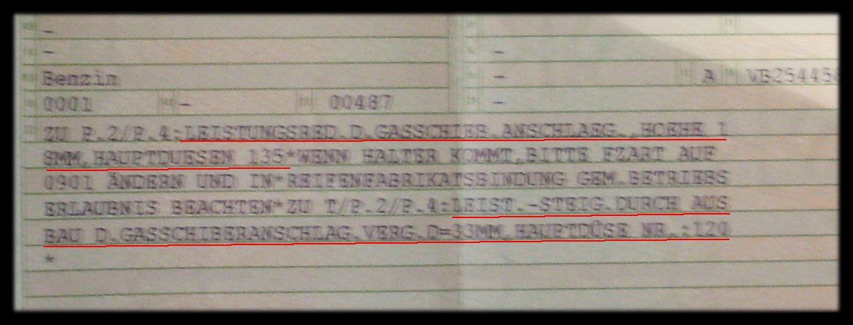 Ohne jetzt nen neuen Fred aufzumachen...denke es passt hier auch rein. Hab heut meine Entdrosselung eintragen lassen, guckt mal was die Schnecken im Landratsamt reingeschrieben haben...
