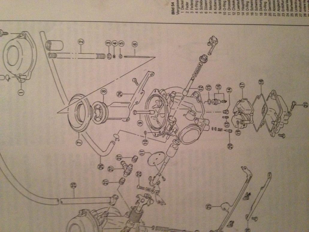 Schraub den Deckel mal ab und schau nach, ob der kleine O-Ring unter dem Synchronisationsanschluss noch da ist. Ohne den läuft die Kiste wie ein Sack Nüsse (Falschluftquelle) und so könnte auch Spritnebel durch den Schieber zum Unterdruckanschluss kommen.