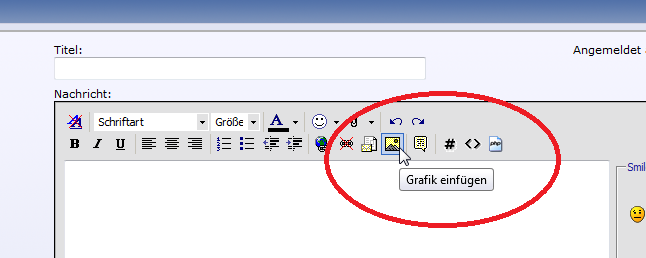 Nur zu eurer Info: Ich habe gerade eben in einem Fred ("Lack oder Folie?" im "Verkleidungen, Anbauteile und Zubehör" Bereich) Verdis Methode versucht, hatte dann jedoch den Button "Grafik einfügen" nicht. In diesem Fred hier kann ich es so machen...