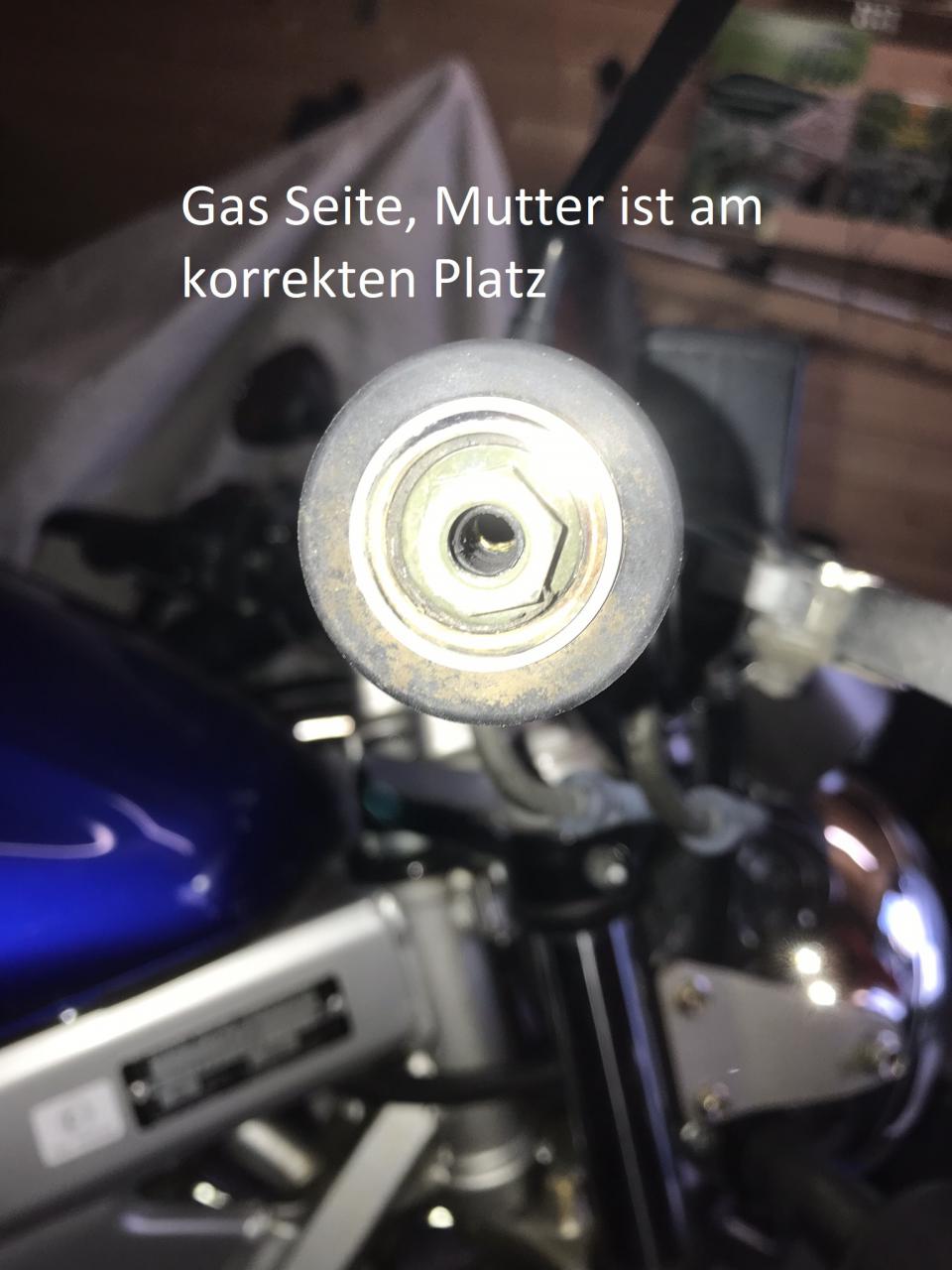 Also bei meiner GS (BJ2004) werden die Lenkerendgewichte auch "nur" durch diesen Gummiprömpel gehalten, der von den beiden von dir beschriebenen Muttern zusammengequetscht wird. Da ist deine Zeichnung schon richtig. Ein weiteres Gewinde weiter hinten im Lenker kommt afaik nicht mehr. Wie das bei den Stummellenkern des alten Modells ist, habe ich gerade ehrlich gesagt nicht im Kopf. Ich glaube, die haben ein eingeschweißtes Gewinde, in das die Schraube vom Lenkerende eingeschraubt wird.