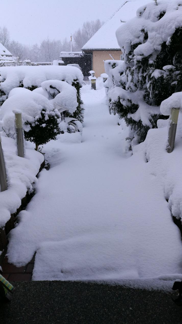nach dem Waschen gestern heute den Schnee abgekehrt. 15cm, und das hier an der flachen Küste.