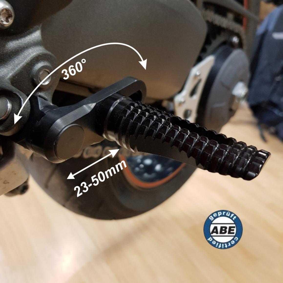 Mir geht es auch eher um die Verlängerungsplatten bei den meisten Variofußrasten, die hätte ich mir selber aus dem vollen gefräst mit einem Maß das perfekt passt, aber wenn es nur welche mit ABE gibt, hat sich das erledigt.