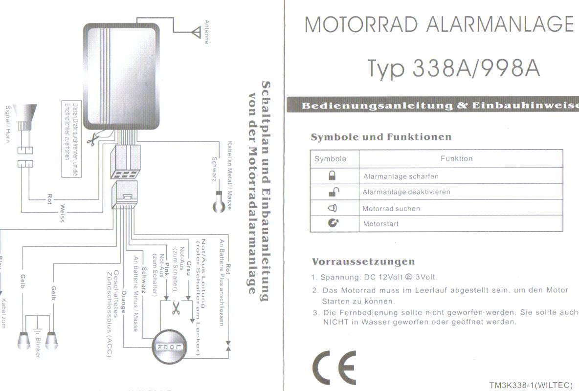 Was passiert, wenn einer an der Kiste rumfummelt und der Alarm geht los? Nix, die Leute kieken und gehen weiter. Der Bösewicht wird sich erschrecken und evtl. die Maschine umschubsen. Auh die Wegfahrsperre ist Quatsch, da Motorräder nicht kurzgeschlossen und gestohlen, sondern einfach in nen Transporter gepackt werden. Auch der Motoraus ist ungünstig. Der Bösewicht wird sich auf's Maul packen und wegrennen. Dann haste auch nix gekonnt (wobei Motorräder wie oben erwähnt nicht so gestohlen werden und an der Ampel gehijacked zu werden ist auch (noch?) sehr unwahrscheinlich). Investier lieber Geld in ein wirklich potentes Schloss und Arbeit in einen massiven Bodenanker. Alles andere ist Firlefanz der dir nicht viel helfen wird, wenns jemand wirklich auf die Maschine abgesehen hat.
