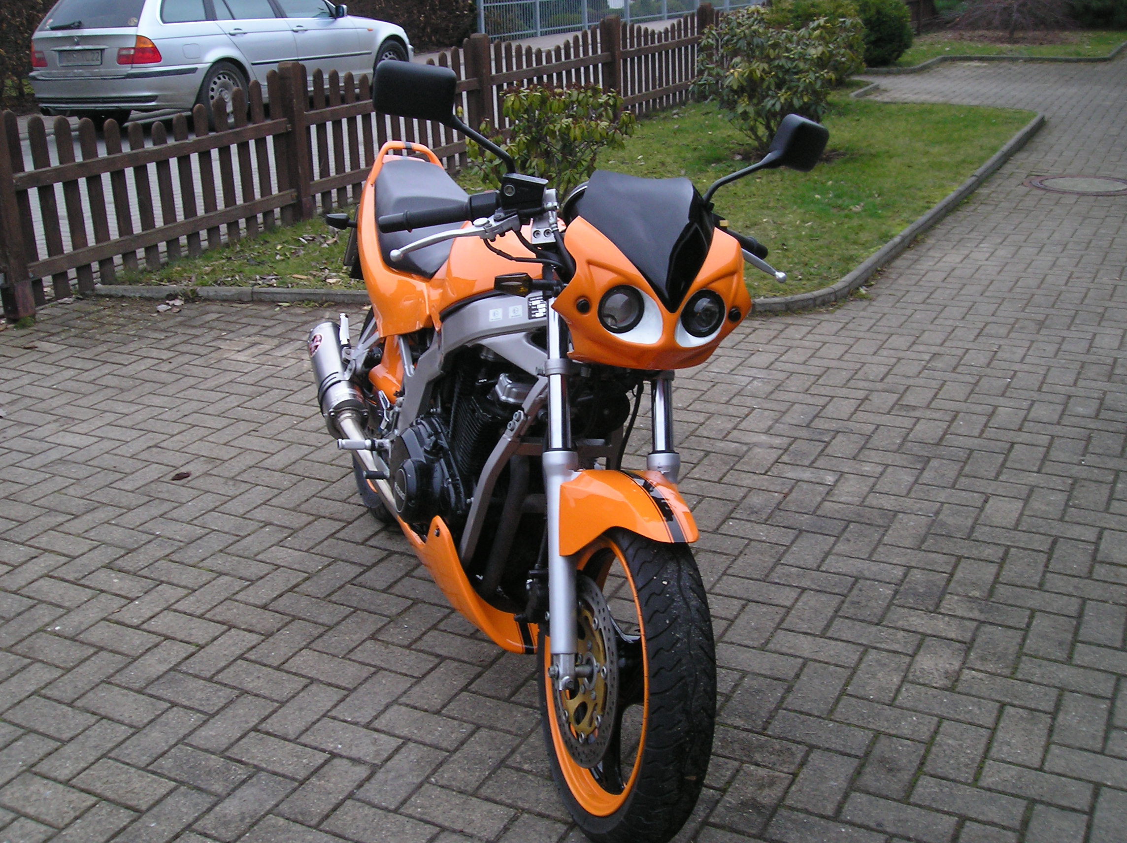Meine GS hab ich vor gut 5 Monaten gekauft in diesem doch recht gutem Zustand. [attachment=6:2gk6zi2i]P1010064.JPG[/attachment:2gk6zi2i] tja aba irgendwie reichte es mir nicht^^ und es kamm ein IXIL dazu und ein K&N Luftfilter hinzu. Tja und dann war auch schon wieder winter Da ging der Umbau so richtig los so sah sie zwischenzeitlich aus [attachment=5:2gk6zi2i]P1010085.JPG[/attachment:2gk6zi2i] In dieser Zeit habe mir so einige Dinge gekauft. Bugspoiler Hinterradabdeckung eine Lichtmaske die Lackierung wurde vom Profi gemacht un heißt Kommunal Orange mit schwarzen Raching Streifen finde das es super aussieht. Ich habe versucht diesen "Styl" über das Motorrad zu verbreiten sprich felg und alle anderen Teile. so sieht sie nun aus [attachment=3:2gk6zi2i]P1010107.JPG[/attachment:2gk6zi2i] [attachment=4:2gk6zi2i]P1010109.JPG[/attachment:2gk6zi2i] [attachment=2:2gk6zi2i]P1010124.JPG[/attachment:2gk6zi2i] [attachment=1:2gk6zi2i]P1010127.JPG[/attachment:2gk6zi2i] [attachment=0:2gk6zi2i]P1010130.JPG[/attachment:2gk6zi2i] So sieht sie bis jetzt aus Moment kommen noch Miniblinker und LSL Fussraste dran. Dann ist sie fertig und warte auf besseres Wetter als schnee und Kälte