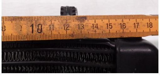 Höhe inkl. Halterungen ca. 11cm (habe ich nicht selbst gemessen sondern vom Verkäufer bekommen.) Da die Halterungen zusammen mind. so hoch sind als der Kühler selbst, vermute ich , daß jeder ca. 5-6 cm ohne Halterungen baut.